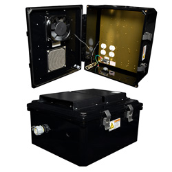 該盒子是堅固的防風(fēng)雨外殼,非常適合室內和室外的各種應用。它采用高抗沖擊,抗紫外線(xiàn)的聚碳酸酯材料制成,在保持最低的重量的同時(shí)具有出色的耐用性和抗沖擊性。它非常適合在高溫或腐蝕性環(huán)境下使用。外殼的蓋子上包括兩個(gè)通風(fēng)孔,安裝了防雨罩和過(guò)濾器。隨附的壁掛支架已被卸載,并和其它硬件一起包裝在機箱內。在安裝了支架后,只要使用適當的螺釘固定在螺柱上,即可將外殼直接安裝到任何平坦的壁面。安裝后,您還可以使用我們的HGX-PMT立桿安裝套件。蓋子具有非金屬鉸鏈系統,可快速拆卸,并且無(wú)需任何額外的工具即可快速重新安裝。 機箱帶有一對帶有掛鎖孔的不銹鋼閂鎖,可確保您防止機箱被篡改。該機箱外殼為黑色。 p> 安裝板 p> NBBPC141206-1HF-1隨附的鋁制安裝板具有標準的電涌保護雙工120 VAC插座和一個(gè)接線(xiàn)端子,可輕松連接至外部提供的電源。該機箱還具有用于兩個(gè)N-Bulkhead型防雷器或連接器,接地片和電纜導管連接器的孔。 p> 加熱和冷卻 p> 為了確保電子設備的正常運行,外殼內部工作溫度必須維持在適當的范圍內。使用內置的加熱器和冷卻風(fēng)扇,可以更好地保持內部溫度。該型號非常適合在高溫和/或寒冷環(huán)境中使用。 p> 在加熱方面,NBBPC141206-1HF-1包含一個(gè)恒溫器控制的200W加熱器。當內部溫度降至40°華氏度(4°C)±7°時(shí),加熱器將打開(kāi);在60°F(15°C)±5°時(shí),加熱器將關(guān)閉。加熱器不需要使用任何交流電源插座,因此可以將它們全部用于設備。由于加熱器安裝在平板下方,因此不需要多余的空間。 p> 在冷卻方面,NBBPC141206-1HF-1包含一個(gè)恒溫器控制的16.4W風(fēng)扇。該風(fēng)扇使用的高氣流,低噪音風(fēng)扇可將溫暖的空氣主動(dòng)推出,而下部通風(fēng)孔則將外部空氣被動(dòng)地吸入機箱。兩個(gè)端口的過(guò)濾器可防止異物或雜物進(jìn)入機箱。當內部溫度升至85°華氏度(29°C)±5°時(shí),風(fēng)扇將打開(kāi),而在67°F(20°C)±10°時(shí),風(fēng)扇將關(guān)閉。像加熱器一樣,冷卻風(fēng)扇不需要使用任何交流電源插座,因此可以將它們全部用于設備。 p> HGX-PMT系列立桿安裝套件可將組裝好的機箱牢固地安裝到各種不同尺寸的立桿上。 p> 兼容版本包括HGX-PMT13,HGX-PMT16,HGX-PMT28,HGX-PMT29,HGX-PMT30和HGX-PMT33 p> 特征