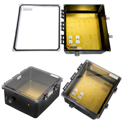 18×16×10英寸(45.7×40.6×25.4厘米)NEMA-4X級戶(hù)外用防風(fēng)雨聚碳酸酯接線(xiàn)盒,IP66防護等級,120V交流電源安裝板,機械式恒溫器加熱,透明盒蓋,黑 L-com的NBBWPC181610-1H0 NEMA接線(xiàn)盒已備貨在庫,并可在下單的工作日當天發(fā)貨。該款美國國家電氣制造商協(xié)會(huì )(NEMA)制式接線(xiàn)盒為NEMA-4X級接線(xiàn)盒,能夠為電氣/電子設備提供保護。 該款美國國家電氣制造商協(xié)會(huì )(NEMA)制式NEMA-4X級接線(xiàn)盒的外部尺寸為18×16×10英寸(45.7×40.6×25.4厘米),內部尺寸為18.2×16.2×9.7英寸(46.2×41.1×24.6厘米),防護等級為IP66,產(chǎn)品編號為NBBWPC181610-1H0,由聚碳酸酯制成,顏色為黑,帶有透明盒蓋,設計上遵循美國國家電氣制造商協(xié)會(huì )(NEMA)評級標準。 該款戶(hù)外用NEMA-4X級接線(xiàn)盒具有防風(fēng)雨設計,能夠為重要的電子和電氣部件提供額外保護。此外,L-com的該款防風(fēng)雨NEMA接線(xiàn)盒還能在戶(hù)外使用環(huán)境下提供防水保護,防護等級為IP66。 NBBWPC181610-1H0工業(yè)/戶(hù)外用IP66防護等級NEMA-4X級接線(xiàn)盒配有120V交流電源安裝板,其載有詳實(shí)規格信息的數據手冊和標注尺寸的CAD圖見(jiàn)上方PDF文件,庫存管理方式均為“庫內持續有貨”。除了為庫存現貨之外,與L-com的其他產(chǎn)品類(lèi)似,該款戶(hù)外用IP66防護等級NEMA-4X級接線(xiàn)盒還能夠在下單的工作日當天發(fā)貨。除此之外,L-com還可針對某些型號和尺寸提供定制結構的NEMA接線(xiàn)盒,如需更多此方面的信息,請聯(lián)系我們。 特征