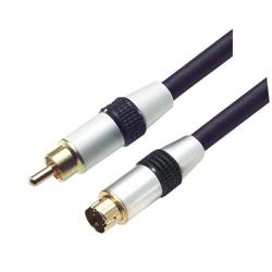 These difficult to find conversion cables allow connection between SVHS video and composite video often needed when interconnecting home entertainment equipment. All contacts of both the S-Video connector and the RCA connector are gold plated for minimal signal loss. Dual coaxial lines are utilized for optimum video signal transmission. We typically carry these useful cable assemblies in stock in 6 handy lengths from 2 to 25 ft.