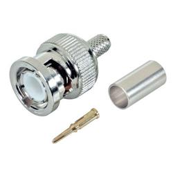 此款公頭BNC射頻連接器專(zhuān)門(mén)用于使用標準壓接尺寸的易用壓接工具壓接廣泛使用的RG142/223/400型同軸線(xiàn)纜:0.213適合壓接套管,而0.068適合引腳。BNC連接器連接扭鎖,因而特別適合射頻應用。