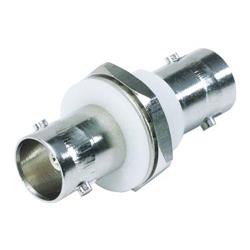 This 75 Ohm insulated BNC female to female feed thru bulkhead coupler provides the ability to pass a coaxial connection through a panel or bulkhead utilizing a standard .470" single D mounting hole with the additional feature of providing a non conductive mounting surface to reduce ground loop problems.