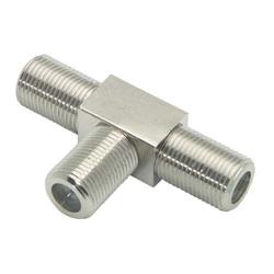 此款F母頭3向T型轉接器用于將普通源的信號傳輸到兩個(gè)不同設備。3個(gè)端口的F型插座接口都特別適合具有許多用途的F型公頭端接線(xiàn)纜。