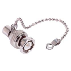This BNC male terminator features a 50 Ohm resistance value. A retaining chain is also included to secure terminator and prevent loss.