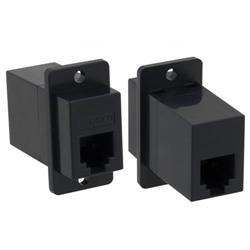 L-com's exclusive line of category 3 panel mount connectors is the perfect choice for passing modular cables through a rack panel or wall plate. The unique flange mount design accepts #4 or #5 screws for secure mounting of these couplers to any panel (purchased separately). Contacts have 30 microinches of gold plating for durability and the black plastic shell is UL94V-0 rated. With a category 3 rating these couplers can be used for either voice or data applications. Large volume discounts offered; Call today.