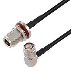 N Bulkhead 母头至TNC 公头直角电缆组件,使用RG58同轴电缆,4英尺