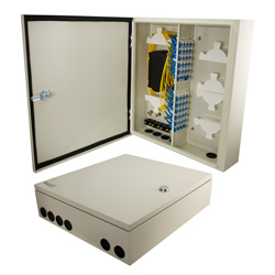 LCWB-48SC-WP為一款室內/戶(hù)外級墻裝單門(mén)式光纖配線(xiàn)/理線(xiàn)交叉接線(xiàn)盒,極其適用于住宅或商業(yè)建筑中光纖端接。該款產(chǎn)品隨附48個(gè)單芯SC/UPC耦合器,其上裝有隨時(shí)可供熔接的24條SC/UPC單模尾纖。除了上述光纖尾纖和耦合器之外,LCWB-48SC-WP還隨附光纖熔接盒和有助于保持大于1.6英寸(40毫米)彎曲半徑的理線(xiàn)配件該墻裝式接線(xiàn)盒能夠對接入的24條光纖進(jìn)行積極有益的理線(xiàn)、連接及分配,可滿(mǎn)足您的工廠(chǎng)、主干網(wǎng)絡(luò )及建筑物內光纖布線(xiàn)中熔接、端接及互連涉及的所有交叉連接需求,以輕松地確保所有安裝設備的井然有序。該款墻裝式接線(xiàn)盒為關(guān)鍵網(wǎng)絡(luò )部件的保護提供一種專(zhuān)業(yè)且經(jīng)濟實(shí)惠的解決方案,其IP54防護等級的盒體由SPCC鋼制成,并且配置帶有墊片密封件、安全鎖及橡膠孔眼的盒蓋,以使得光纜操作時(shí)能夠實(shí)現輕松的連入和連出。此外,該款產(chǎn)品能夠同時(shí)在戶(hù)外孤立地點(diǎn)及室內網(wǎng)絡(luò )間中提供針對受潮損壞的保護