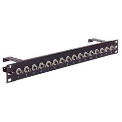 This 1U feed thru rack panels features 16 grounded 50 Ohm BNC female adaptors. An additional feature of this rack panel is the inclusion of cable management brackets to help organize cable routing. A typical application for a 50 Ohm BNC is data transmission. Panels are made from 16 gauge cold rolled steel and finished with a durable black powder coat.