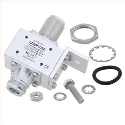 RF surge protector (also known as lightning arrester) LCSP1030 from L-com utilizing a proprietary surge protection technology protects critical hardware from lightening events while maintaining the RF performance. This RF surge protector component is manufactured in a coaxial in-line design with wide operating frequency range and available in stock with same day shipping. Optional weather proofing kit and copper cleaning kit are available for purchase separately.