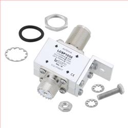 RF surge protector (also known as lightning arrester) LCSP1032 from L-com utilizing a proprietary surge protection technology protects critical hardware from lightening events while maintaining the RF performance. This RF surge protector component is manufactured in a coaxial in-line design with wide operating frequency range and available in stock with same day shipping. Optional weather proofing kit and copper cleaning kit are available for purchase separately.