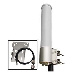 L-com's ARK5158DP-10U-0 features HyperLink's HG5158DP-10U 5 GHz dual polarized 10 dBi omni-directional antenna. Included with each antenna is a unique mounting bracket that allows the Ubiquiti? RocketM5 radio to be attached directly to the antenna. Also included are a pair of 195-series low-loss cable assemblies to connect the RocketM5 to the antenna. Customers can enjoy the cost saving of these kits compared to purchasing an Ubiquiti? antenna to use with the RocketM5 radio. The ARK5158DP-10U-0 Kit includes: