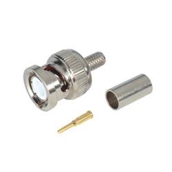 此款公頭BNC射頻連接器專門用于使用標準壓接尺寸的易用壓接工具壓接RG58U型同軸線纜:0.213適合壓接套管,而0.068適合引腳。BNC連接器連接扭鎖,因而特別適合射頻應用。
