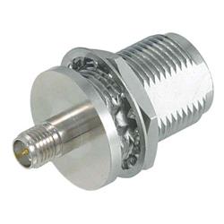 此款N型穿壁式母頭轉(zhuǎn)反極性SMA插座(RP-SMA)同軸線纜轉(zhuǎn)接器能夠?qū)型公頭接口與反極性SMA插頭接口相連。