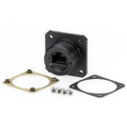 These ruggedized Category 5e or Category 6 RJ45 Flange mounts are transversely sealed for complete moisture and dust protection. An IP68 rating applies even without a mated connector or dust cap! This line comes with full mounting hardware including a bracket, self-sealing mounting screws, and gasket making for an easy installation. Zinc-Nickel versions are available with an EMC grounding plate on both sides of the receptacle to ensure full grounding of shielded RJ45 cord sets. Flanges are available with or without dust caps. Contact our technical support today to discuss your application.