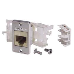 這些獨特的6類面板安裝RJ45連接器套件解決了該問題:將標準類別插頭安裝到對于標準keystone型系統過厚的面板中。這些連接器在背面提供獨特的無工具終端,以實現迅速端接。每個插座都具有符合EIA/TIA568 A和B標準的顏色編碼,可以快速輕松地安裝。每個連接器都有保護措施,防止不希望的及意外的斷開。金屬法蘭可牢固地將該連接器固定在厚度大于0.062英寸的面板。零件被包裝為套件,包括法蘭、2個4-40螺釘和1個RJ45 6類插座。提供5類或6類型號,可以選擇白色、黑色或乳白色。立刻訂購!
