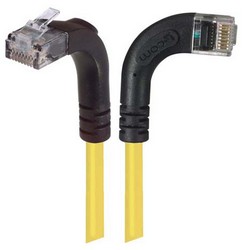 L-com's unique, patented, right angle patch cables provide true Category 5E performance at an affordable price. These newly designed right angle Ethernet patch cables feature a specialized channel separator and load bar to achieve Cat 5E performance while maintaining a right angle bend. L-com's right angle cables are superior to competitor's right angle assemblies. We've tested it ourselves and the competitor's right angle cables do not pass the Cat 5e test since the twists of the individual pairs are not maintained into the connector body. These industry first cables are perfect for use in tight fit applications and dense connectivity applications commonly found in data centers. Order online today!