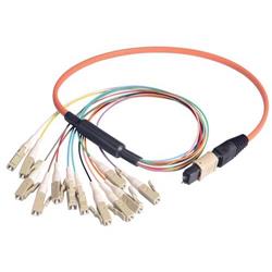 These L-com multi-fiber ribbon cables provide great advantages in size by offering up to 12 times the density when compared to the same size SC connector! Factory terminated and tested, these OM2 50/125 Multimode fiber optic cables provide significant installation time savings. A push-pull design is utilized for easy mating and removal. Fan-out assemblies are ideal for making connections within rack mounted or wall mounted fiber enclosures that utilize single fiber connectors. Available in 6 or 12 count MPO to MPO versions as well as MPO to fan-out assemblies utilizing LC, SC or ST connectors. MPO cassettes are also available from L-com. L-com's MPO connectors are fully compatible with US Conec MTP products. Use our custom cable configurator to create custom lengths today.