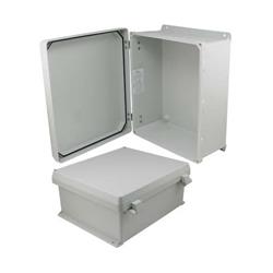The NBN series are UL? Listed rugged weatherproof enclosures featuring two non-metallic hinges and a continuous gasketed lid secured by two stainless steel captive screws that ensure optimal integrity. Constructed from molded halogen free self extinguishing fiberglass reinforced polyester (FRP), they are well suited for both indoor and outdoor applications in high temperature or corrosive environments.