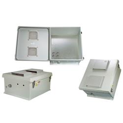 Start with the Box... The box is a rugged 18" x 16" x 8" weatherproof enclosure that is ideal for both indoor and outdoor applications. Constructed from molded fiberglass, it is well suited for high temperature or corrosive environments. The mounting flange allows it to be wall mounted as well as on a flat surface. The box can also be pole mounted with the optional pole mounting hardware kit. The fully gasketed lid features a stainless steel continuous hinge and stainless steel quick release latches with padlock hasps. The enclosure material is UV stabilized and comes in machine tool gray. The enclosure also features holes for mounting Lightning Protectors or Connectors, a grounding lug and ?" cable conduit connector. Due to the large size of this enclosure, it can accommodate dual sets of most access points. Mounting Plate The aluminum mounting plate has provisions to mount WLAN equipment from Cisco?, Symbol?, D-Link?, HyperLink and more. With the optional HGX-AMOUNT02 bracket a wide array of HyperLink Power-Over-Ethernet products and Power Supplies can be mounted as well. Two of these brackets can be mounted side by side. Also available is the HGX-NMOUNT03 Universal Mounting Shelf that can be attached to the mounting plate and can accommodate additional equipment to be placed in the enclosure. The mounting plate is wired for 0 to 60 VDC operation. It is ideal for use with 12 VDC Solar Powered applications, Battery Back-Up applic 特征