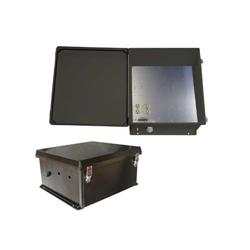 The NBB181608-1H0 is a rugged weatherproof enclosure that is ideal for both indoor and outdoor applications. Constructed from molded halogen free self extinguishing fiberglass reinforced polyester (FRP), it is well suited for high temperature or corrosive environments. The integral mounting flange allows it to be wall mounted as well as on a flat surface without the need for extra mounting hardware. The fully gasketed lid features a stainless steel continuous hinge and stainless steel quick release latches with padlock hasps. The black color of the NBB series makes these enclosures ideal for security and surveillance equipment since they blend in easier with existing municipality landscapes. The contoured body provides an attractive and contemporary appearance. Due to the large size of this enclosure, it can accommodate dual sets of most access points. 120 VAC Mounting Plate with Lightning Protection The aluminum mounting plate features standard surge protected duplex 120 VAC outlets and a terminal block for easy hook up to the externally provided line power. In addition, the unit can accept up to two optional bulkhead-mount N-Type lightning protectors to protect the coaxial cable runs. Cold Environments To help ensure trouble-free operation of electronic equipment, proper operating temperatures inside an enclosure needs to be maintained. With the built-in heating system, internal temperatures can be better maintained. This model is ideal in Cold environments. The NBB181608-1H0 includes two thermostat-controlled 200W heaters. Each heater is controlled by its own thermostat. The heaters turns on when the internal temperature drops to 40° F (4° C) ±7° and turns off at 60° F (15° C) ±5°. The heaters do not require the use of any of the AC outlets, leaving them all available for your equipment. No extra room for the heaters is required since they are mounted underneath the plate. For additional information and complete specifications, click on the Data Sheet in the Downloads section. 特征