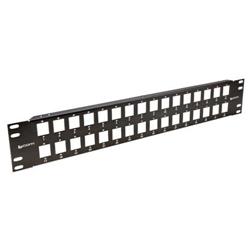 Configure your own patch panel with L-com's innovative flange style couplers and adapters. These 19" rack panels are pre-tapped and designed to accept all the ECF and ECJ series adapters we stock. Mix and match RJ11, RJ12, RJ45, USB, and Firewire couplers on one panel. Panels are finished with a black powder coat and available in a 1.75" 16-port version or a 3.5" 32-port version. Optional cable management bracket PR-CMB available sold separately) Same day shipping on most items; Order online today! 特征