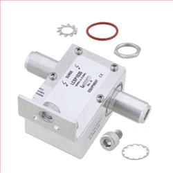 RF surge protector (also known as lightning arrester) LCSP1035 from L-com utilizing a patented filter surge protection technology acts as a high-band filter shunting surge energy to ground to protect critical hardware while maintaining the RF performance. This RF surge protector component is manufactured in a coaxial in-line design with wide operating frequency range and available in stock with same day shipping .